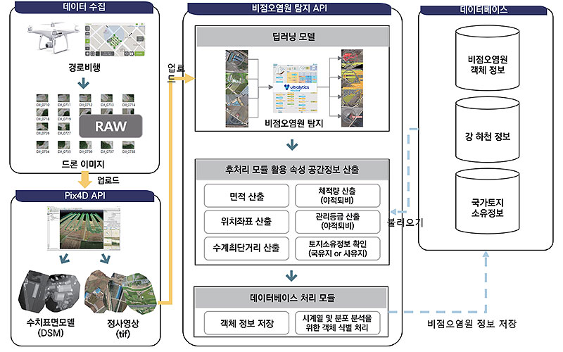 하천 수질에 영향을 줄 수 있는 비점오염원 탐지 및 관리, 수계 오염원 탐지 연구를 수행합니다. 이를 통해 하천의 환경 모니터링과 관리를 혁신적으로 개선하고 지속가능한 환경 보호를 목표로 하고 있습니다.